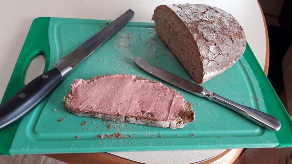 Frisches Brot mit Leberwurst, hmmmm!