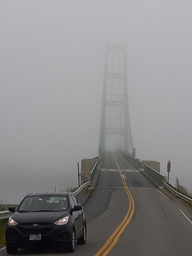 Im Nebel über die bekannte Brücke