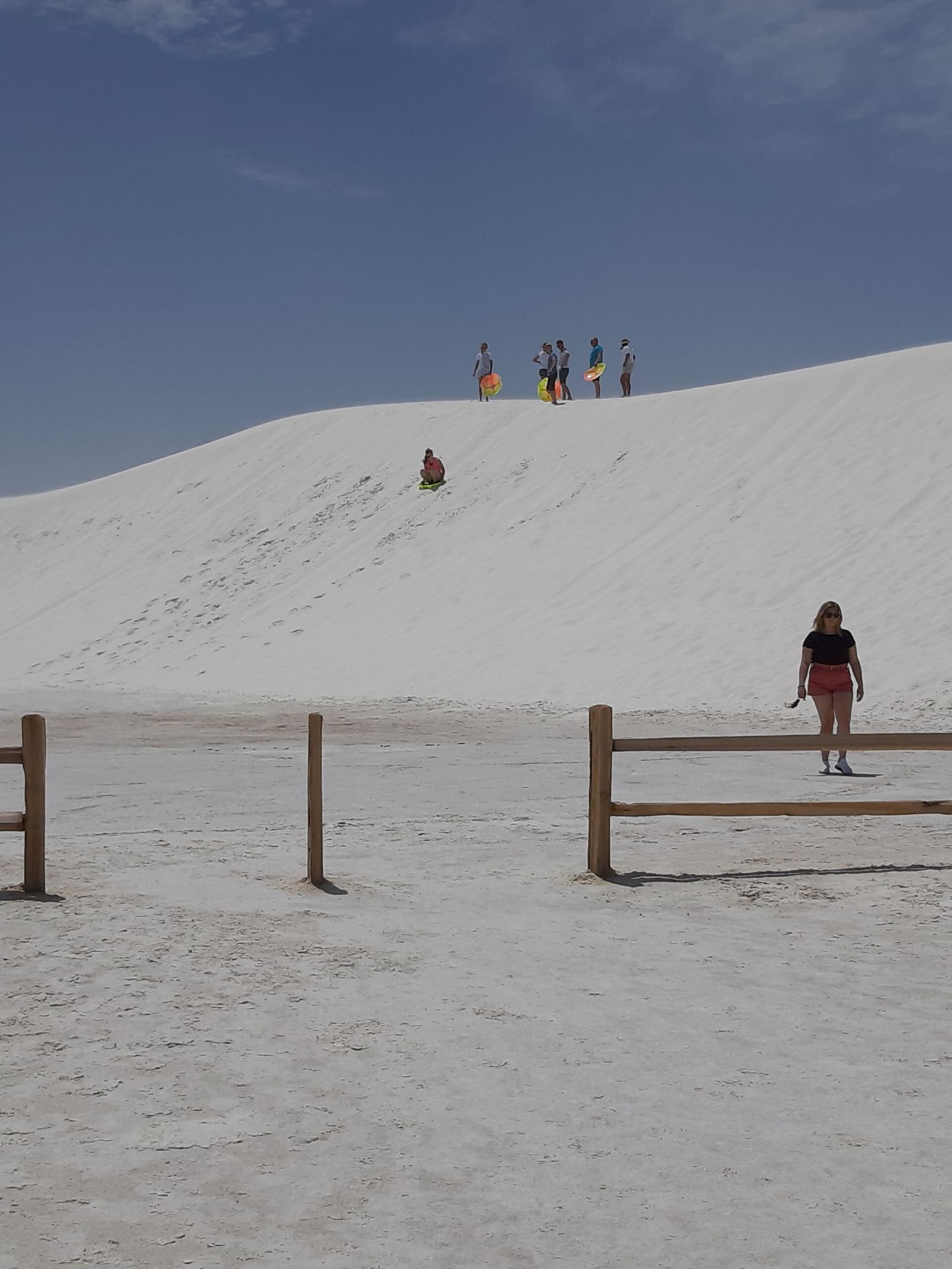 lassen. Es gibt Picknick Areas, mit Sonnenschutz, Windschutz, Tisch, Grill, alles was man so braucht zum Picknick. Ein großes Vergnügen bereitet wohl, mit extra dazu mitgebrachten, bzw. vor Ort gekauften Sitzschalen die Dünen runter zu rodeln, im Sand halt und nicht im Schnee!