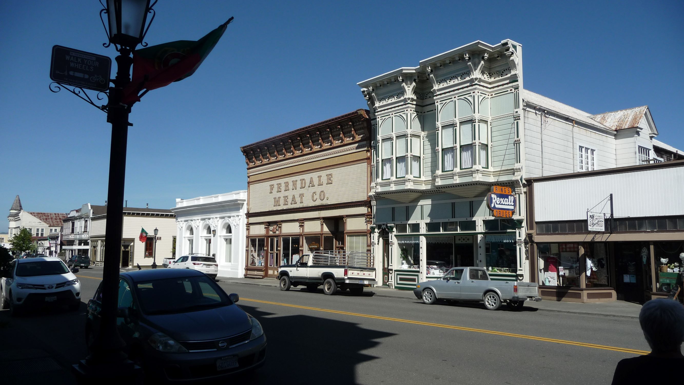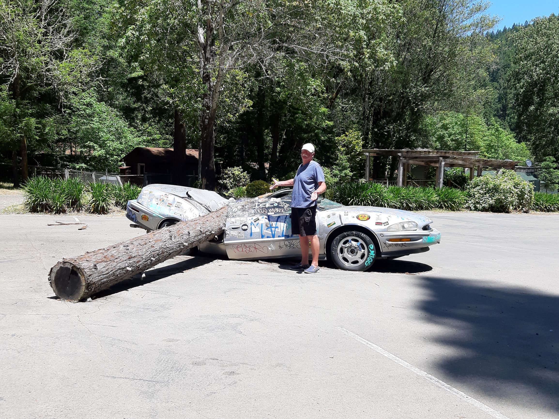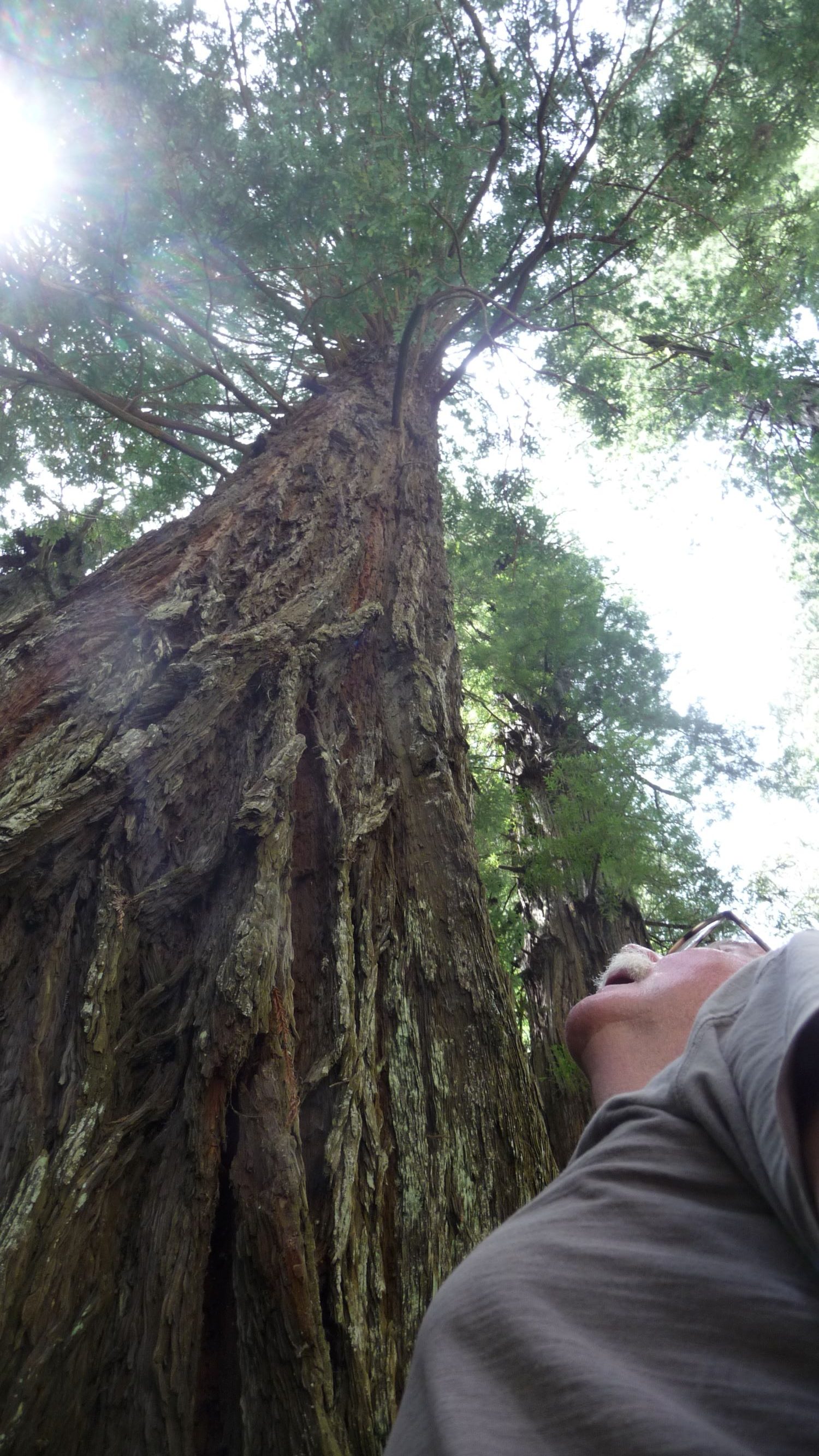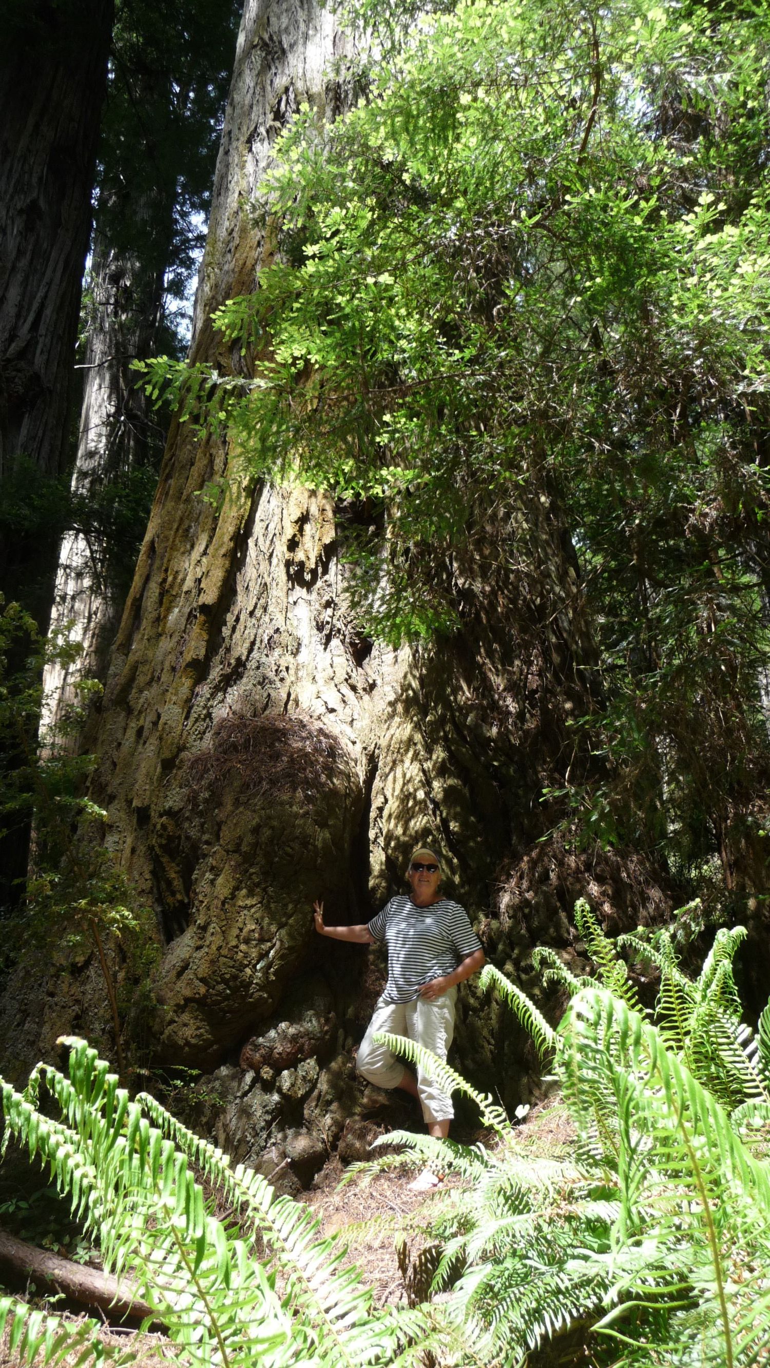 Von Ferndale gings weiter den Highway 101 nach Norden. Der Durchquert den Redwood National Park, in dem die höchsten der Redwoods stehen, aber natürlich nicht am Straßenrand. Um zu den allerhöchsten Bäumen zu gelangen, muss man entweder 14 km laufen oder mit dem Auto eine wilde Straße in die Berge fahren, dies auch nur mit einer speziellen Erlaubnis. Um die 2. höchsten Bäume zu sehen, gibt es noch eine andere Möglichkeit, nämlich bis zum Lady Bird Grove hochzufahren. Auch ein schmales steiles Sträßchen mit engen Kurven. Jutta hatte schon beim Hochfahren die erste Krise. Als wir bei besagtem Grove ankamen, stellte sich heraus, dass dort ein winziger Parkplatz für ca. 15 Autos, aber keiner so groß wie Oigen zur Verfügung stand. Von dort wäre es noch einmal 1,5 Meilen Rundweg gewesen, aber wir mussten leider unverrichteter Dinge wieder umkehren!