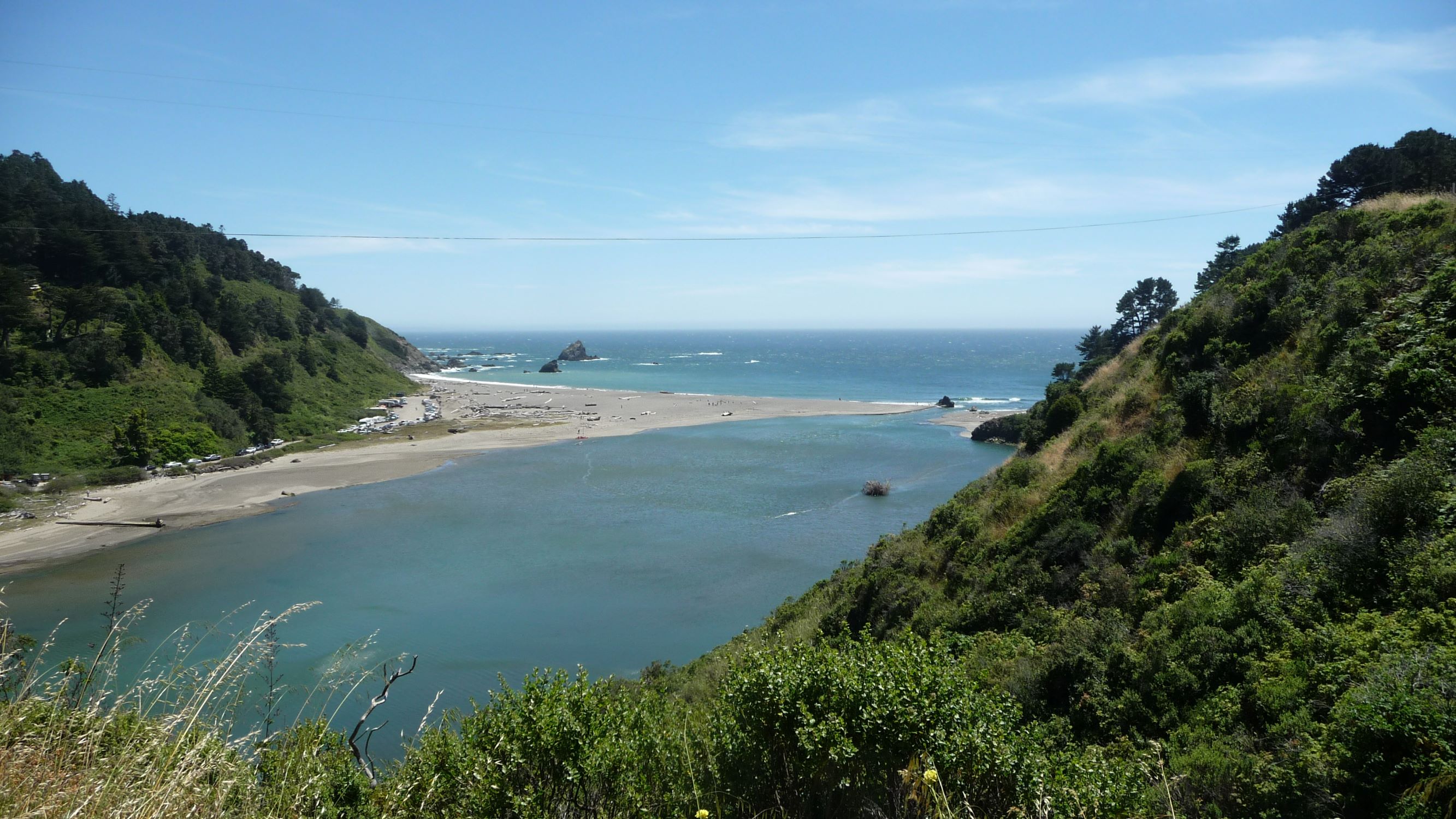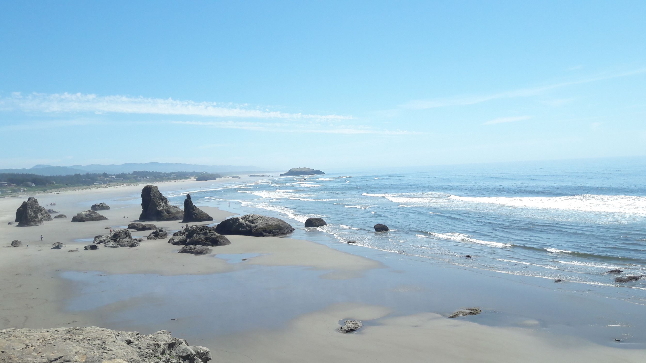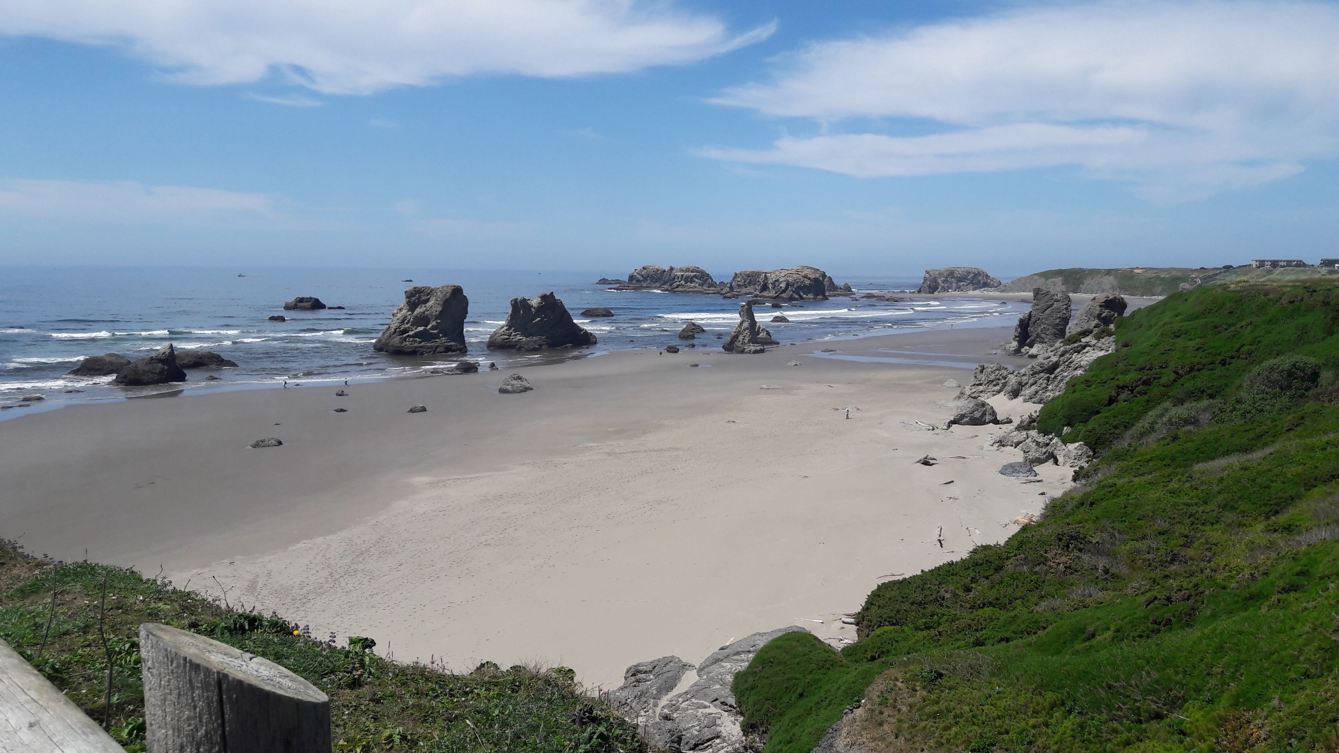 So führte uns der Highway 101 am wahrscheinlich schönsten Küstenabschnitt entlang. Weite Buchten mit breiten Stränden, menschenleer, im Wasser kleine und große Felsen, die Luft mal klar, mal diesig. Man konnte sich gar nicht satt sehen. Hier könnte man es länger aushalten. Ob dieser Thematik, dass wir doch immer viel zu viel fahren und gar keine Zeit haben, mal irgendwo an der Küste zu bleiben, entzündete sich dann eine heftige Diskussion, ob die Reise sinnvoll und gut geplant sei. Ergebnis der Diskussion ist noch offen, erst einmal geht es weiter wie geplant. Aber wir müssen irgendwann noch mal ein paar Tage einsparen um mal irgendwo ein paar Tage zu bleiben. Jeden Tag fahren ist schon blöd.