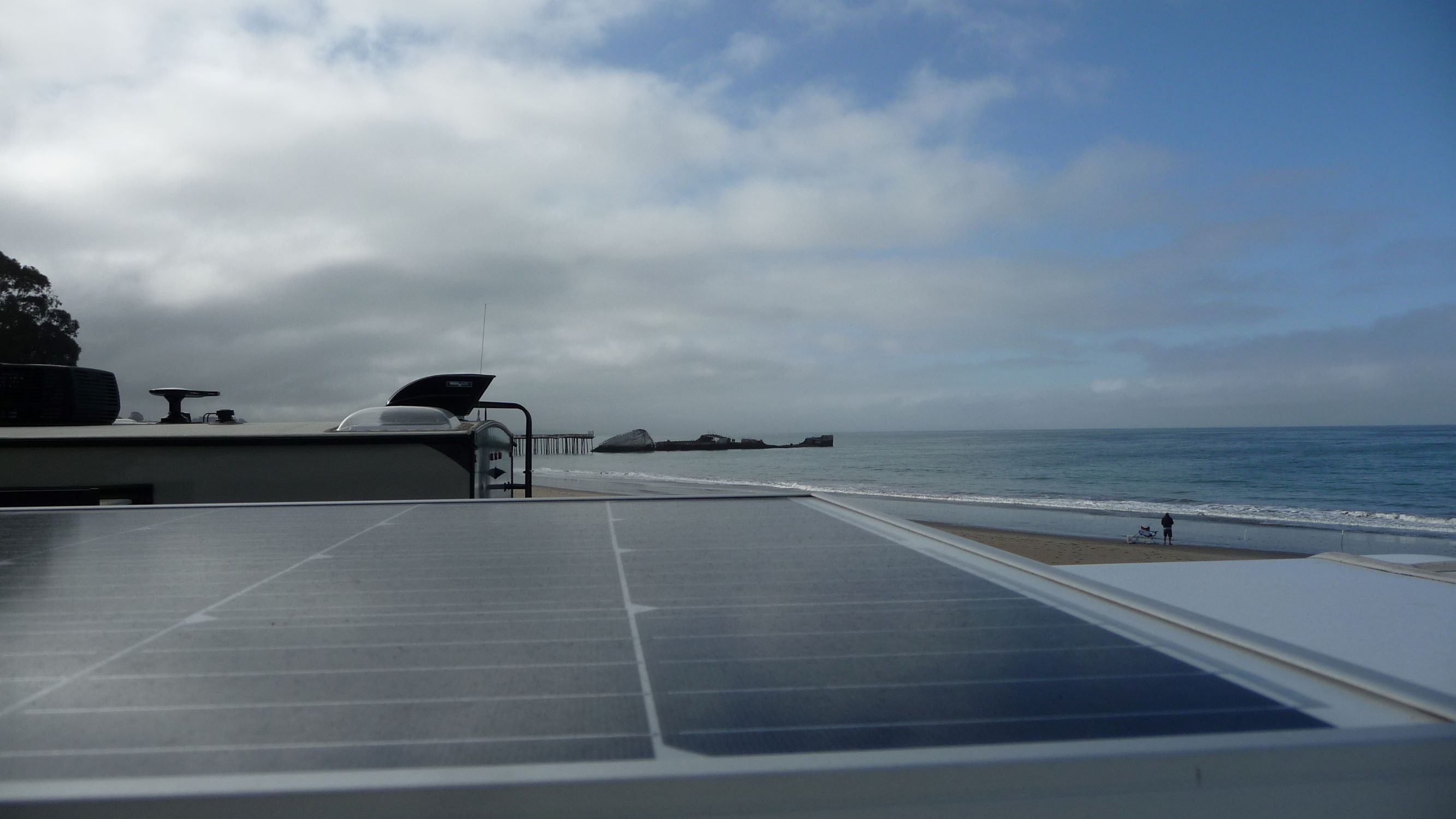 Unser Tagesziel hatten wir uns in Oregon gesteckt, nämlich den Harris Beach State Park. Dort war nach Aussage des Schildes an der Einfahrt alles voll, aber es gab dann doch noch ein Plätzchen, leider nur Full Hook-up, einen Stellplatz für Zelte wollten sie uns nicht geben, dafür war Oigen zu lang. Sehr schön in einem Wäldchen gelegen, zum Strand ging eine Straße hinunter. Ein beliebter Ort um den Sonnenuntergang zu beobachten, aber leider verschwand die Sonne 2 Finger breit über dem Horizont hinter Wolken. So mussten alle, die mit Kamerastativ und allem Drum und Dran gekommen waren, unverrichteter Dinge wieder abziehen. Aber vorher war es trotzdem sehr schön, der Strand übersäht mit Treibholz, vom kleinen Stöckchen bis zu sehr dicken Stämmen.